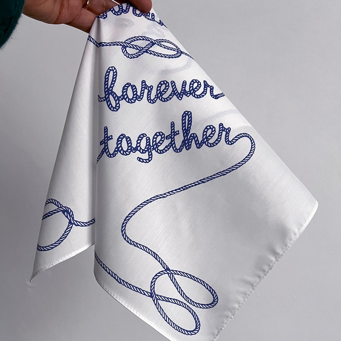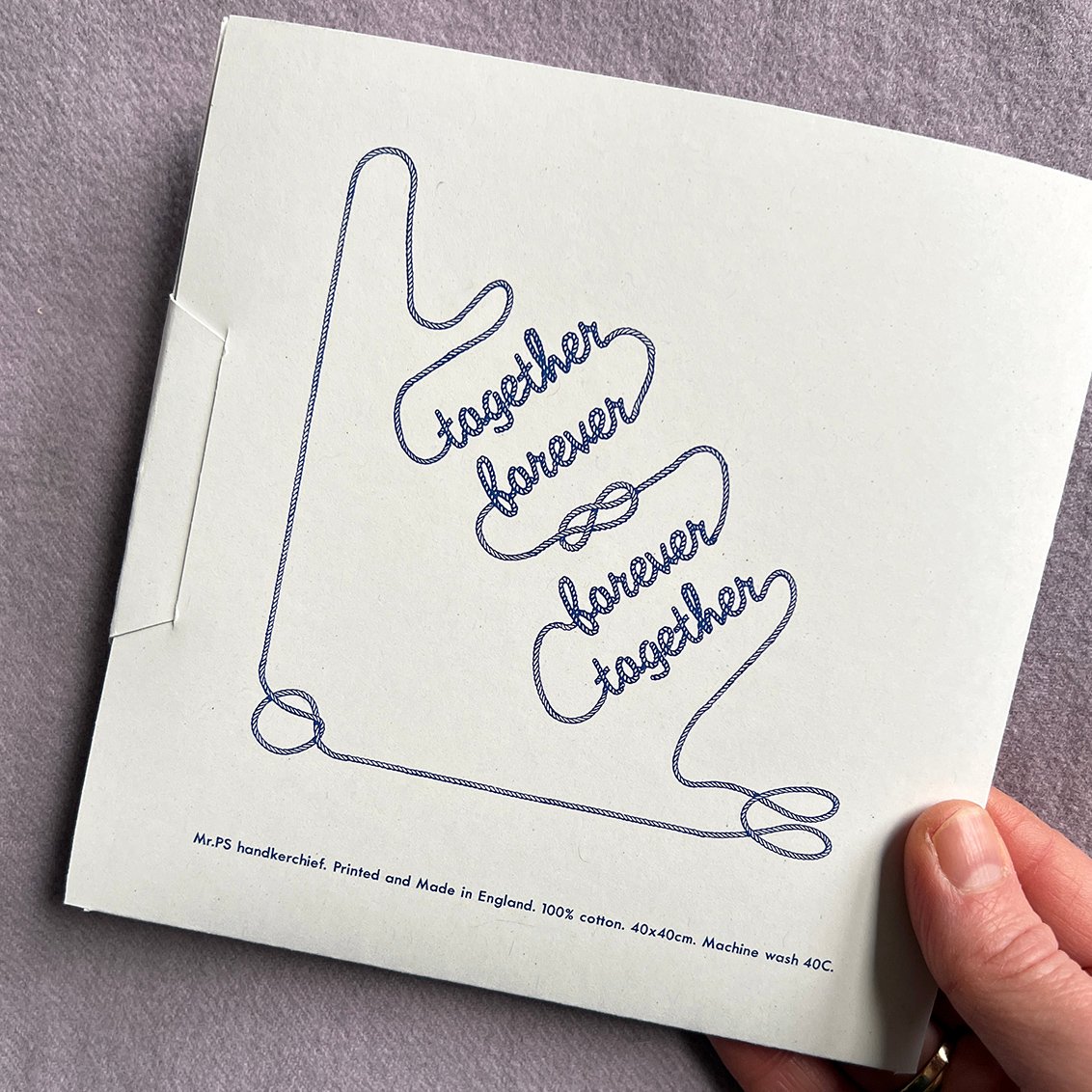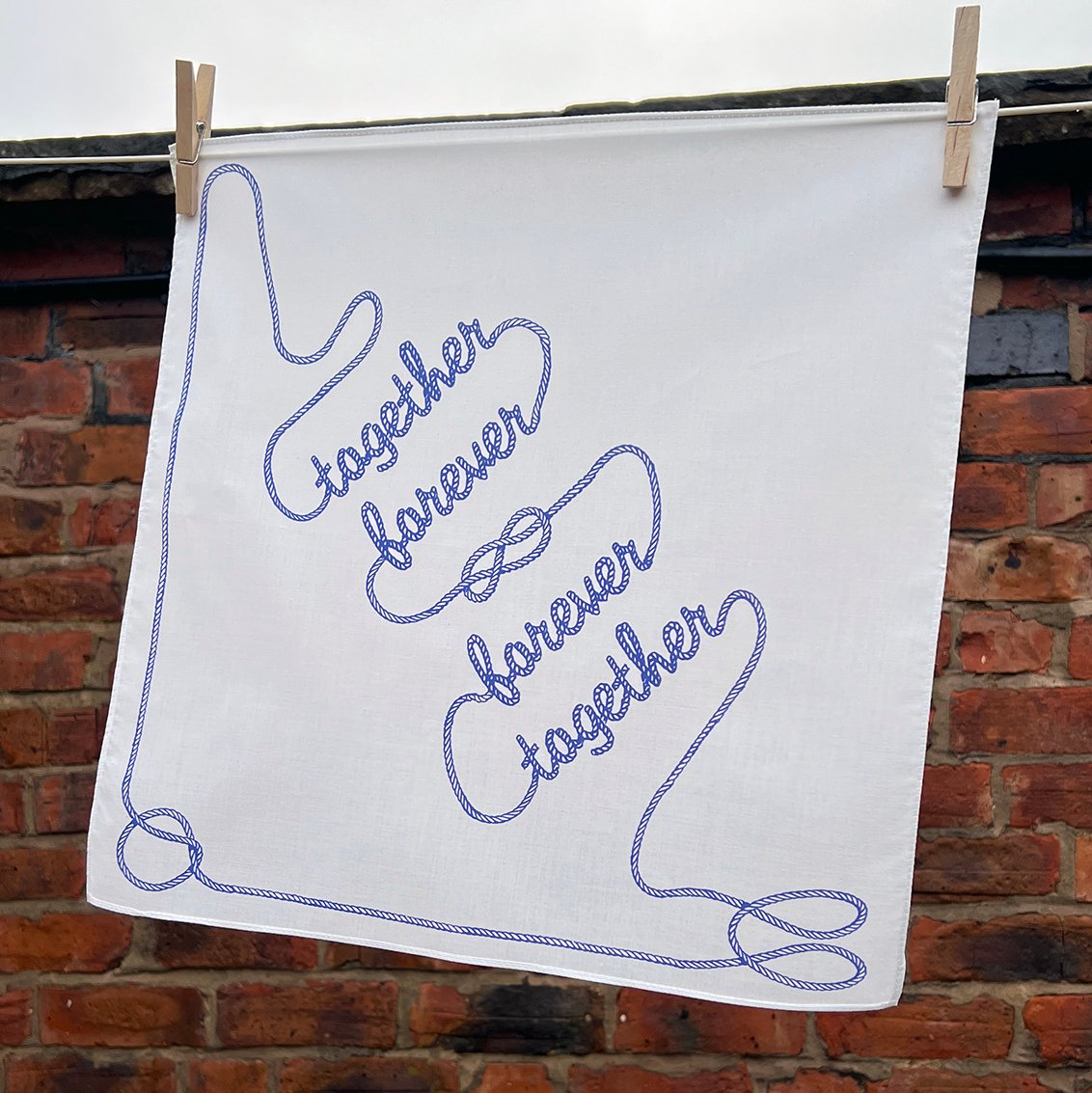 Together Forever & Forever Together, this romantic screenprinted cotton hankie is a perfect gift for those tying the knot; and as a (cotton) wedding anniversary present.